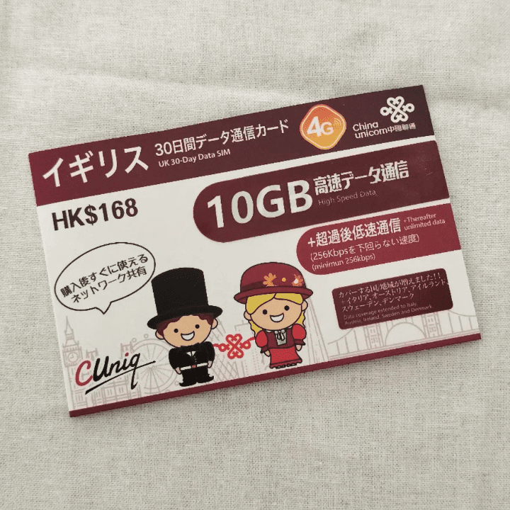 これは、’現地の’SIMカードというより、中国の会社が提供しているイギリスで使えるSIMカードでした。「ヨーロッパで使えて30日間で10GBで3000円」のものを購入しました。