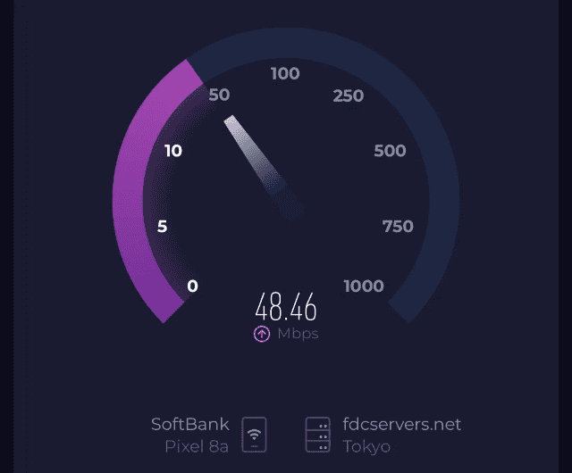 アプリのspeedtestで4箇所で速度計測しました