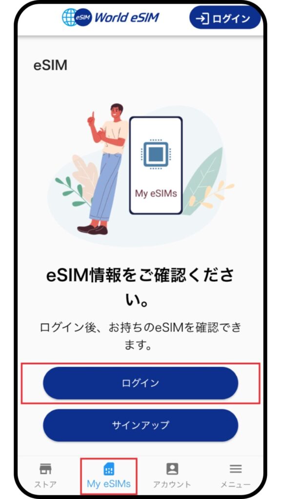 アプリを開いたら「My eSIM」をタップする