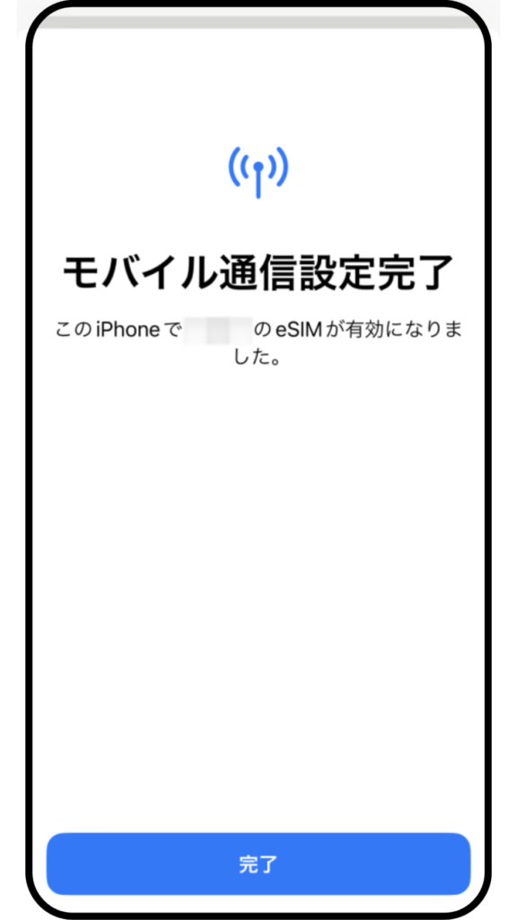 モバイル通信設定完了後、「完了」をタップしてください。