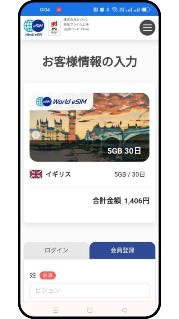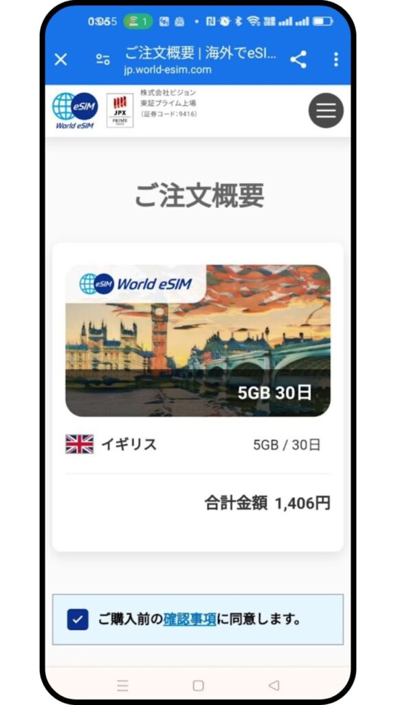 2024年6月、パートナーとのイギリス旅行で利用しました。滞在は11日間で、「イギリス単体 30日間・5GB/¥1,406」のプランを選択しました。