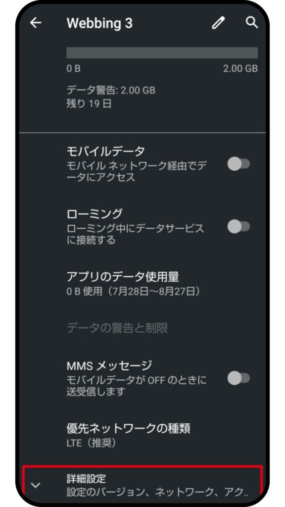 ④ギガ数を確認する