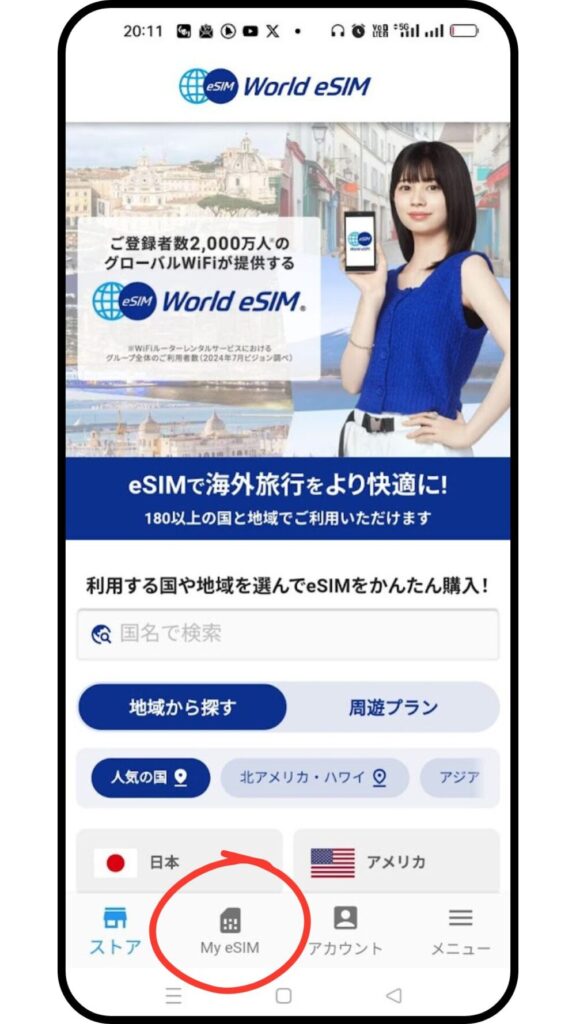 ①World eSIMのアプリを開く