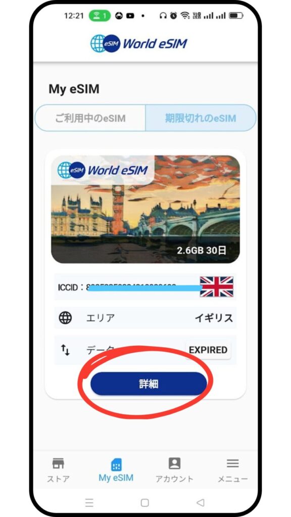 この画像は、僕が以前イギリスで使用したものなので、「期限切れeSIM」の中にあります。